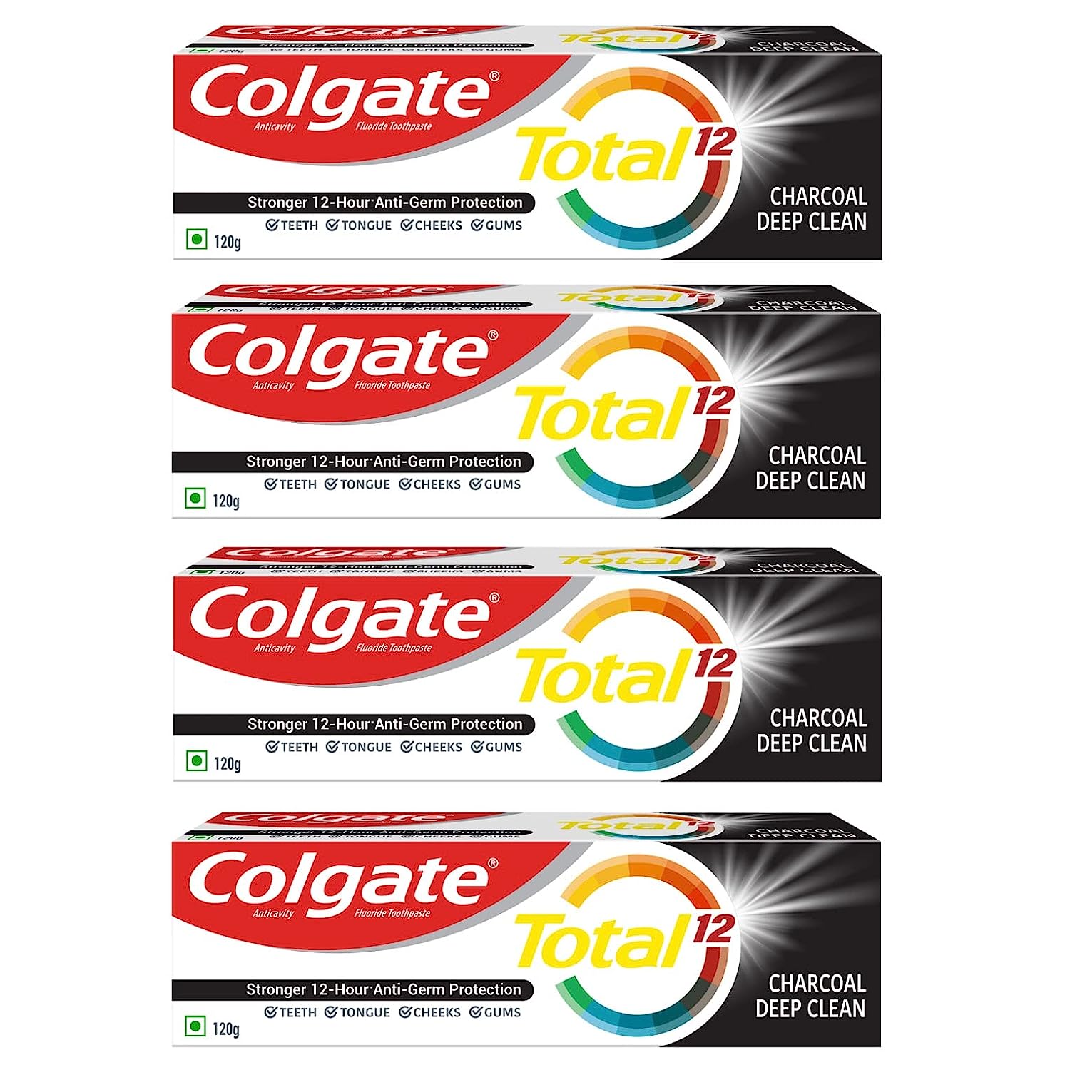 4x Colgate Total Antibacterial Toothpaste, (Charcoal Deep Clean) - 4x 120gm