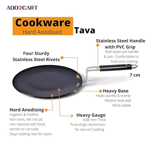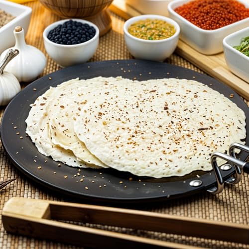 Pre-Seasoned Iron Concave Tawa with Silicone Grip for Dosa/Chapathi, 30.48cm/9 in, 0.8 kg, Gas Compliant, 100% Pure & Toxin-Free, Uncoated in Black