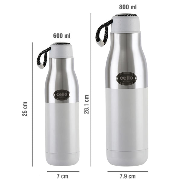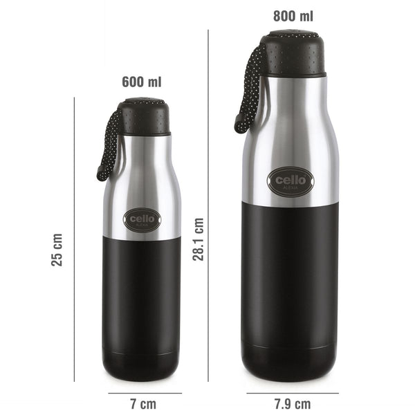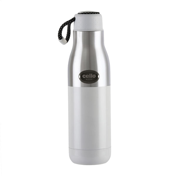 Introducing the Alexia Flask Vacusteel Water Bottle that combines style and functionality seamlessly. Available in classic black, vibrant blue, and timeless white, this stainless steel flask is designed to keep your beverages at the perfect temperature, whether you prefer them hot or cold. Crafted with food-grade stainless steel and featuring advanced vacuum insulation, the Cello Vacusteel Flask ensures your drinks stay refreshingly enjoyable for extended periods, making it the ideal choice for all your beverage needs.