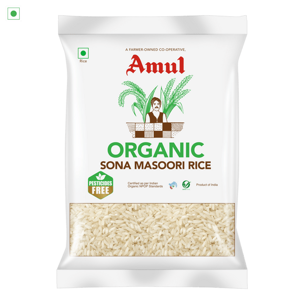 Amul ORGANIC SONA MASOORI RICE is a premium variety that is perfect for recipes requiring a fluffy texture. Grown without any synthetic pesticides, the rice is high in nutrients and a great source of dietary fiber. Enjoy this fragrant and flavorful rice in a variety of dishes for a delicious and healthy meal.
