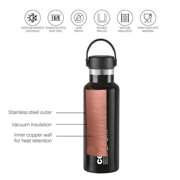 Introducing the Aqua Bliss Flask, an 1100ml Vacusteel Water Bottle, designed to revolutionize your drinkware collection. Available in a vibrant spectrum of colors, including black, blue, orange, red, and violet, this stainless steel flask not only adds a touch of style but also ensures your beverages stay perfectly hot or refreshingly cold with its advanced vacuum insulation technology. Crafted from food-grade stainless steel, the Cello 1100ml Vacusteel Flask guarantees both durability and beverage safety, making it your go-to choice for versatile and reliable hydration, regardless of the season or occasion.