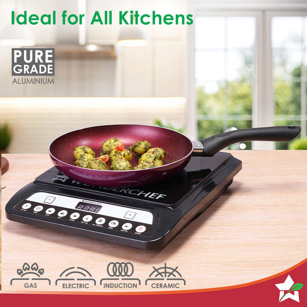 Bandhan Non-Stick Cookware 2 Pcs. Set | Dosa Tawa and Fry Pan | 100% PFOA Free Coating | Pure Grade Virgin Aluminium | Compatible with Multiple Cooktops | Red and Purple | 2 Year Warranty