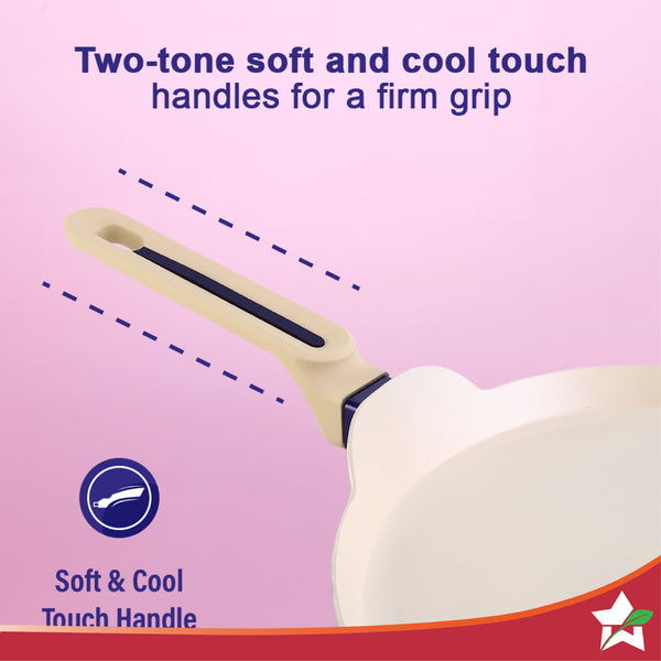 The Bellagio Ceramic cookware Set features ergonomically designed dual-tone soft-touch handles that provide a firm grip and remain cool during cooking. Experience complete comfort and control with Bellagio cookware as you cook your delicacies..