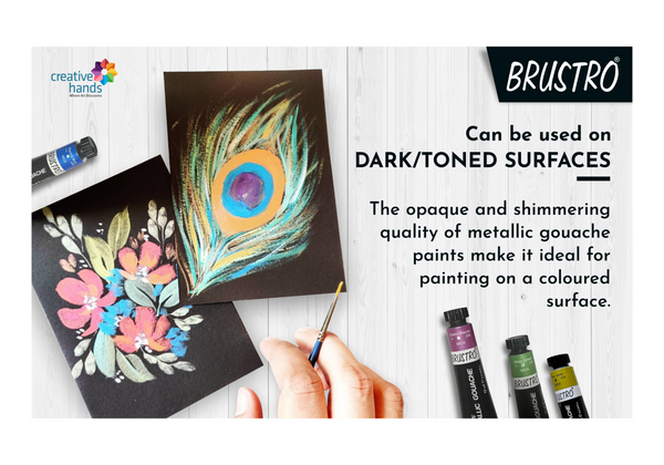 Brustro Metallic Gouache is highly pigmented, has an intense matte metallic finish and achieves its opacity from the heavy pigment load.