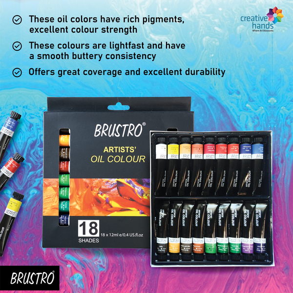 BRUSTRO Artists’ Oil Colour Set of 18 Colours X 12ML Tubes