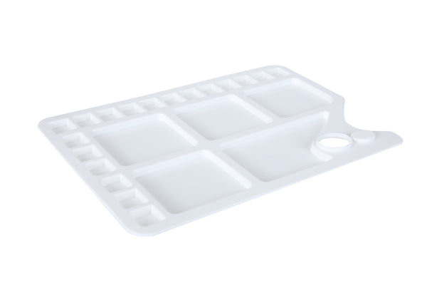 Measuring a generous 34.5CMX23.5CM, the Brustro Rectangle Shaped 10 wells Palette also features an ergonomic grip thumb hole that sits comfortably in either the right or left hand — simply flip the palette over. It is ideal for both oils, acrylics & watercolours. This allows easy clean-up with acrylic & watercolours colors by means of using water or for oil colors with odorless paint solvents.