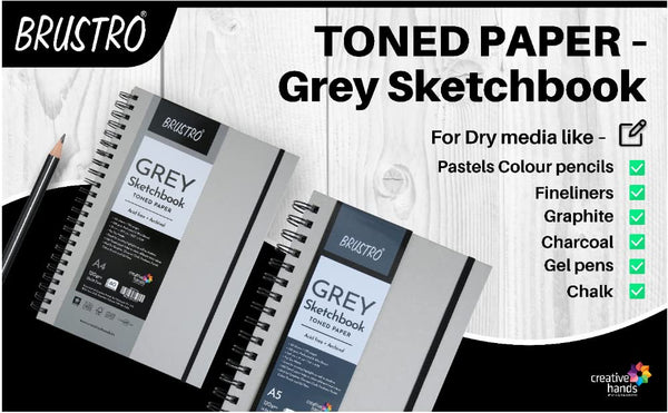 Ideal for Graphite Charcoal Chalk Fineliners Pastels Colour pencils and Gel pens.Great for creating highlights as well as shadows.Ideal for mastering light techniques and dark media.Mid toned paper helps to attain different tonal values.Size A4, 120GSM (60 Sheets), 120 Pages