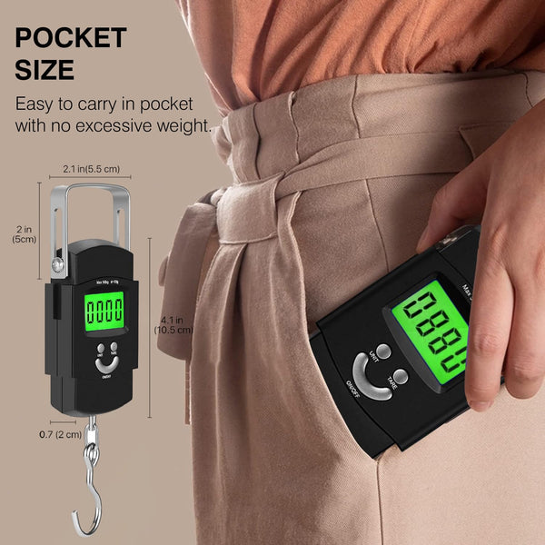 Details: This heavy duty portable hanging scale can be used for weighing your luggage or any item with a maximum weight of 110 lbs (50kg). It is a useful tool for home, travel, and outdoor activities. It features an easy to read large LCD blue backup light displays weight in kgs/lbs and combines tare data lock functions. It has a accuracy of 10gm with multiple weighing units in kg/lb/oz. It can hold automatic reading and indicates over load weighing with auto shut-off function. Uniquely designed and use conveniently for shopping, kitchen, fishing, luggage, outdoors or gifting to nearest one.