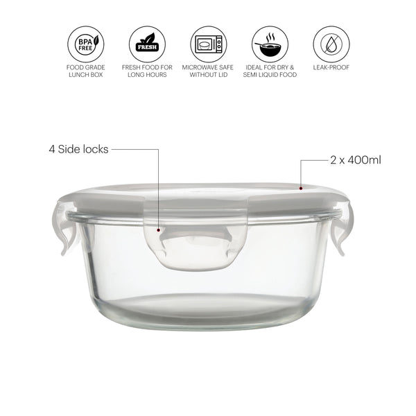 Elevate your kitchen storage with Cello's Camellia Borosilicate Glass Round Containers. Crafted from high-quality borosilicate glass, these containers offer exceptional durability and temperature resistance, making them ideal for both hot and cold foods. With a generous 400ml capacity, they're perfect for leftovers, snacks, and meal prep. The leakproof, airtight design ensures your food stays fresh, and the secure locking mechanism prevents spills. Their crystal-clear glass allows easy content visibility, and their stackable design optimizes kitchen space. These containers are microwave and freezer-safe, adding both practicality and elegance to your kitchen. Trust in their safety and hygiene, and enjoy the convenience of reheating and freezing your culinary creations. Upgrade your food storage with Cello's Camellia Borosilicate Glass Round Containers, seamlessly combining functionality and sophistication.
