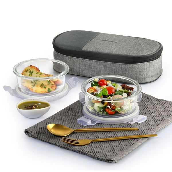 Delighta Borosilicate Glass Lunch Box with Jacket, Round