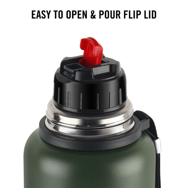 Introducing the Duro Flip Flask Vacusteel Water Bottle with a Thermal Jacket, designed for the adventurous spirit in you. Whether you're heading out on treks, hikes, cycling, going to the gym, school, or the office, this flask is your reliable companion. Crafted with advanced DTP coating, its vibrant colors won't fade or scratch with everyday use, ensuring it looks brand new even with wear and tear. This double-wall insulated water bottle keeps hot liquids piping hot and cold beverages ice cold. The unique DTP coating enhances its appearance, and Vacusteel technology with a copper-coated interior ensures prolonged temperature retention. It's leak-proof, odor-free, and its compact design makes it perfect for an outdoorsy lifestyle, whether you're hiking, trekking, camping, playing sports, hitting the gym, or embarking on other adventures. Carry it with ease in the included pouch and embrace an active lifestyle with a bottle that stands the test of time.