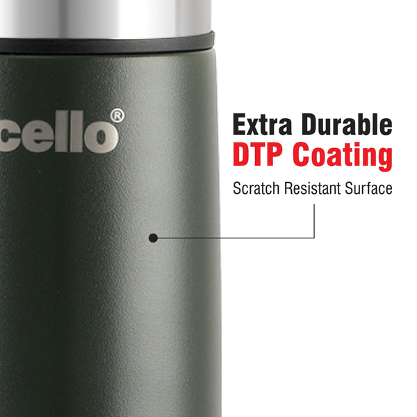 Introducing the Duro Flip Flask, a 750ml Vacusteel Water Bottle with a Thermal Jacket, designed for the adventurous spirit in you. Whether you're heading out on treks, hikes, cycling, going to the gym, school, or the office, this flask is your reliable companion. Crafted with advanced DTP coating, its vibrant colors won't fade or scratch with everyday use, ensuring it looks brand new even with wear and tear. This double-wall insulated water bottle keeps hot liquids piping hot and cold beverages ice cold. The unique DTP coating enhances its appearance, and Vacusteel technology with a copper-coated interior ensures prolonged temperature retention. It's leak-proof, odor-free, and its compact design makes it perfect for an outdoorsy lifestyle, whether you're hiking, trekking, camping, playing sports, hitting the gym, or embarking on other adventures. Carry it with ease in the included pouch and embrace an active lifestyle with a bottle that stands the test of time.