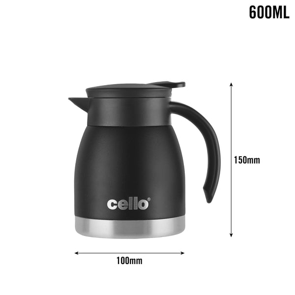 Cello Duro Pot Double Walled Vacuum Insulated Teapot is a must-have for coffee enthusiasts seeking a stylish and functional solution. With a substantial 600ml capacity, this teapot is the ideal choice for those who appreciate a significant amount of coffee. Crafted from premium stainless steel and equipped with cutting-edge vacuum insulation technology, it excels at maintaining the perfect temperature while preserving the rich flavor and freshness of your brew, ensuring it stays hot or cold for an extended period. The convenient push-button pour spout allows for effortless one-handed serving, making it a hassle-free option for any occasion, whether it's a corporate event, a birthday celebration, or a casual breakfast with friends