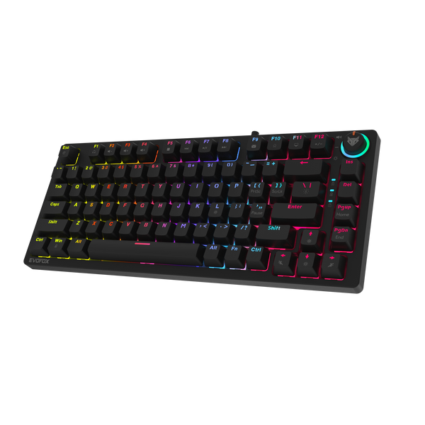 Experience gaming like never before with the EvoFox Katana X2 TKL Gaming Keyboard. Engineered for precision and performance, this compact mechanical keyboard features professional-grade Outemu Blue switches for tactile feedback and responsiveness. Enjoy vibrant rainbow backlighting with 18 dynamic effects to match your gaming setup. With 26 anti-ghosting keys, every keystroke is accurately registered, ensuring flawless gameplay. The multifunction volume controller allows for easy adjustment of audio and keyboard brightness settings, while its compact TenKeyLess (TKL) design saves space on your desk for your go-to gaming setup.