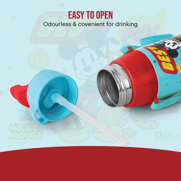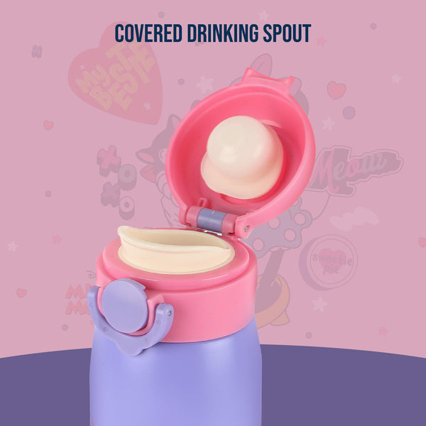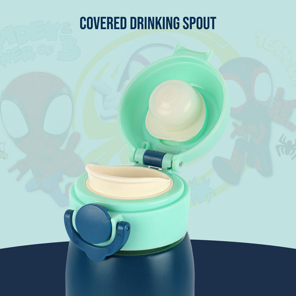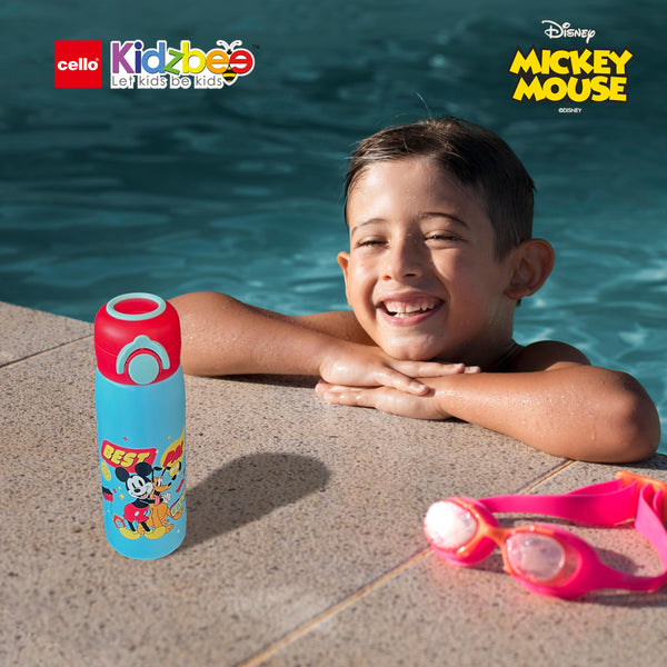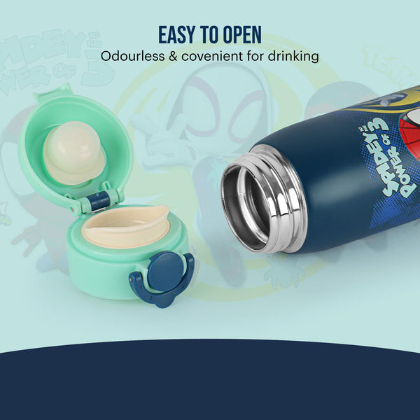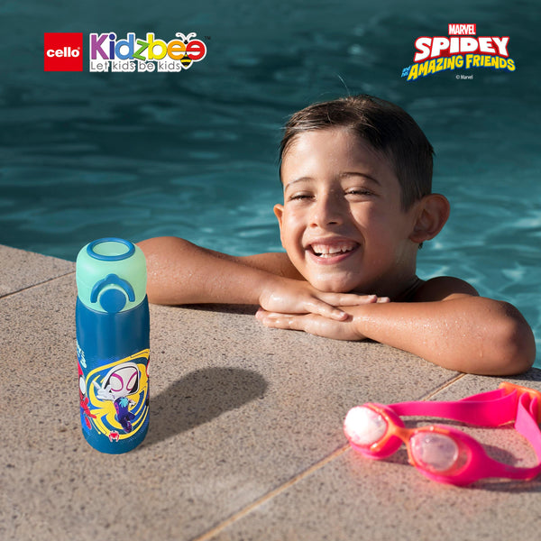 The Cello Kidzbee Giggle Thermosteel Kids Flask 380 ml is a stainless steel bottle designed specifically for school and picnics. Its standout feature is the captivating 3D design, featuring beloved Disney and Marvel characters that appeal to children. Beyond aesthetics, this Kids Flask excels in maintaining beverage temperature, keeping drinks hot or cold for longer hours. Its user-friendly design includes a convenient push-button lid for effortless access and an interlocking mechanism that prevents unintended spills, ensuring a mess-free experience. Moreover, it boasts an odorless construction, preserving beverages' taste integrity without lingering smells. The Cello Kidzbee Giggle Thermosteel Kids Flask not only meets practical needs but also enhances the drinking experience with its engaging design and reliable performance, making it a perfect companion for active kids and their daily adventures.