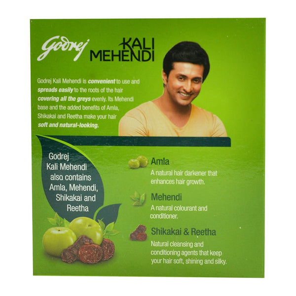 Details: Godrej Kali Mehendi is convenient to use and spreads easily to the roots of the hair covering all the greys evenly. Its Mehendi base and the added benefits of Amla, Shikakai and Reetha make your hair soft and natural looking.
