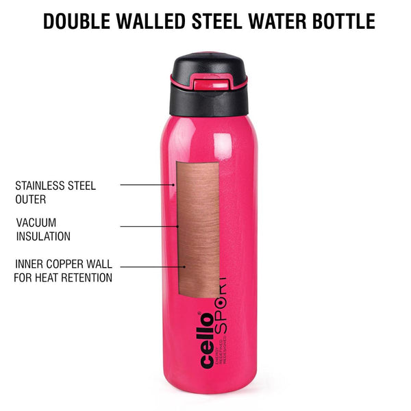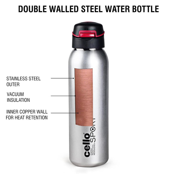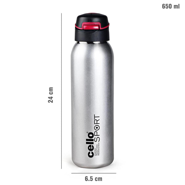 Introducing the Gym Star Flask by Cello, a 650ml Vacusteel water bottle designed to elevate your hydration experience. Crafted with precision and featuring an array of colors including Red, Silver, Black, Blue, and Green, this stainless steel bottle is your ultimate companion for on-the-go hydration.