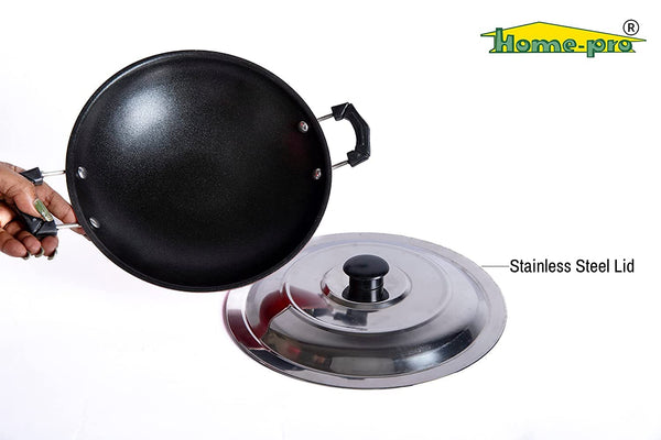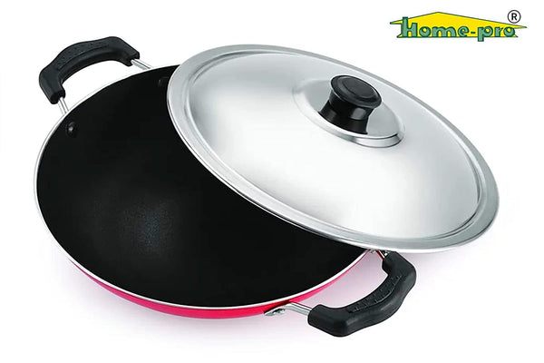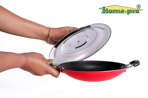 Home-pro Non-Stick Aluminium Appachetty with Steel Lid, Deep Round Bottom Appachatti, Appachatty with Steel Lid, Residue Free, Red