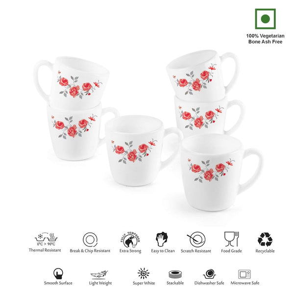 Imperial Red Rose Fantasy Ricca Mugs, 6 Pieces