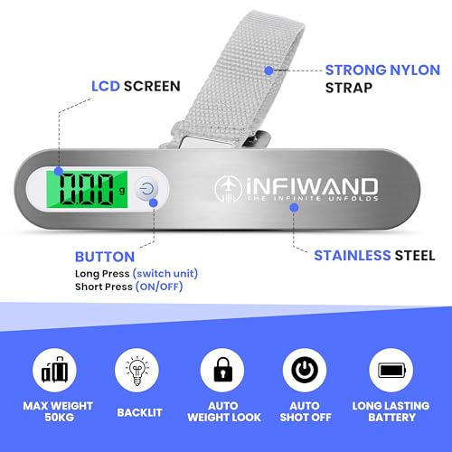 InfiWand™ Portable Digital Weight Machine for Luggage | Ideal Luggage Weighing Scale and Weighing Machine for Luggage | Bag Weight Scale for luggage | 50 Kg Max