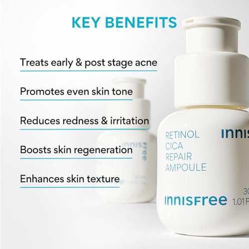 Details: Innisfree Retinol Cica Repair Ampoule is a highly effective moisture ampoule containing retinol and cica (centella asiatica-derived ingredient), substances that help to reduce the trouble of dead skin cells and visible pores from the beginning. The ampoule containing pure retinol helps to take care of smooth and transparent skin texture, from the sudden and sensitive early troubles to the mid-term troubles with rough and rough skin texture and even the traces of uneven skin blemishes.