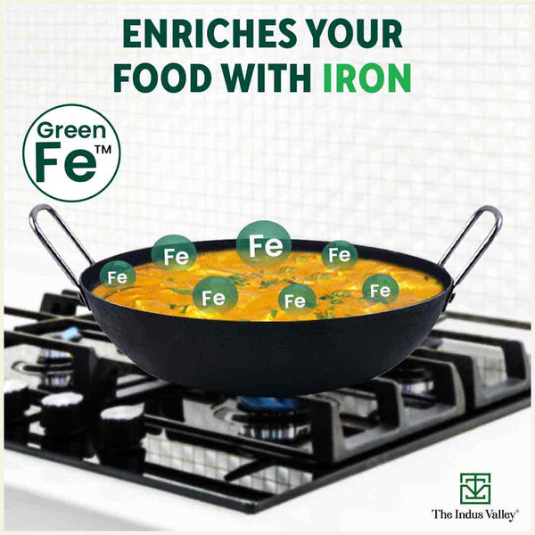 100% Pure Sheet Iron Kadai, Seasoned, Toxin-free, 1.4/2.7/4.4L, 0.6/0.9/1.4kg