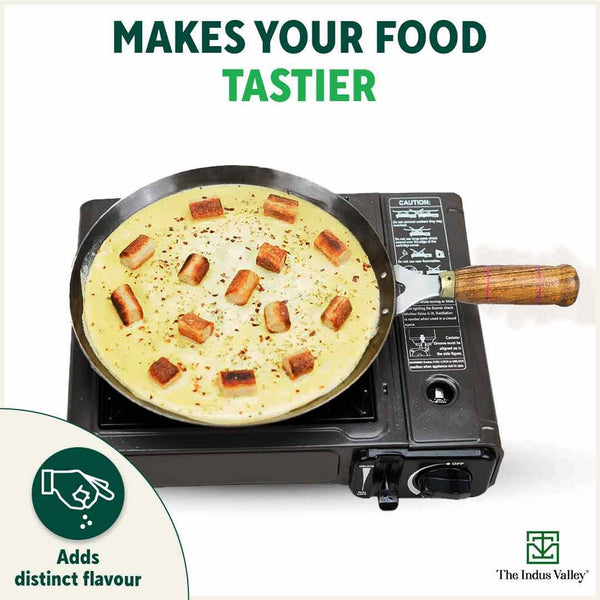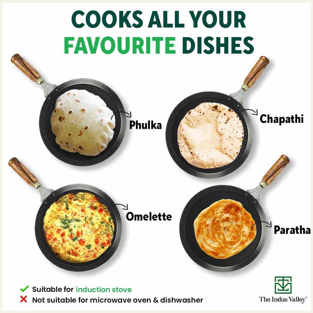 π³COOKS ALL YOUR FAVOURITE DISHES: Make your favourite dishes effortlessly like uthappam, roti, paratha, omelette,Β & more. Also, the iron tawa is suitable for shallow-frying, roasting, searing, etc.