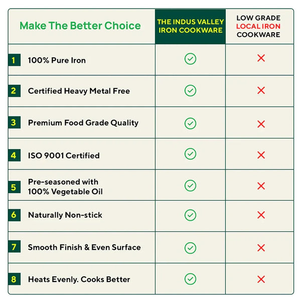 🌿100% NATURAL & TOXIN FREE: The Indus Valley’s Pure Sheet Iron Concave Roti/Chappati Tawa is made from 100% pure iron. Thus, this iron roti tawa with handle is food-safe and toxin-free. It is a healthier alternative to non-stick tawa that is generally covered with harmful coating. Do you wish to buy tawa online that is safe for your and your family’s health, then get this amazing tawa from The Indus Valley!