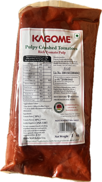 Introducing Kagome Pulpy Crushed Tomato, now available in a convenient 1kg package. Made with rich tomato pulp, this crushed tomato is bursting with flavor and nutrients. Perfect for soups, sauces, and more. Experience the difference with Kagome.