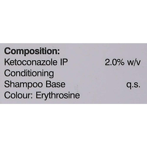 Details: Composition: Ketoconazole IP 2.0% w/v conditioning shampoo base q.s. Dosage: As directed by the Physician. Storage Instruction: Store in a cool dry place, away from direct sunlight.