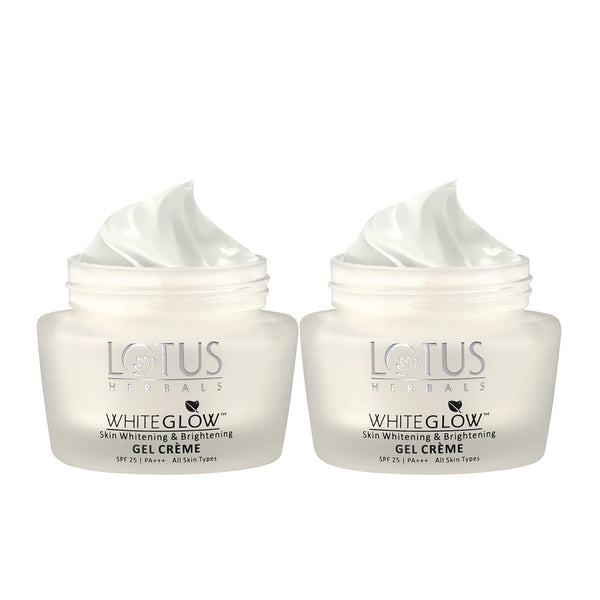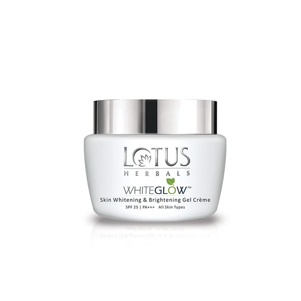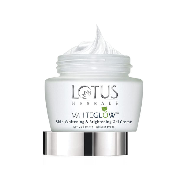 Details: The Lotus Herbals Whiteglow Skin Whitening and Brightening Gel Cream SPF-25 (60 g), is an apt product to help you fight the stern rays of the sun and remain tan-free for a long period of time, thanks to its SPF 25 PA+++ formulation. It has a one of its kind base that has the amazing combination of a gel and a cream. This unique base facilitates fast absorption, leaving you with youthful looking supple skin that radiates brightness. The mulberry, saxifrage and grape extracts helps make the skin brighter, override the harmful effects of skin darkening and lend a beautiful texture to the skin surface post application. Its milk enzymes act as natural fairness agents and lightens the skin tone with a visible difference. You can now effectively tackle the harmful effects of both UVA and UVB on applying this cream.The cream is made from multiple fruit extracts that act as quality elements for the smoother, brighter and well-protected skin.Its SPF 25 can help you get ideal skin protection while in direct sunlight.It is gel based cream – a unique formulation to help quick absorption and oil free look.The fairness agents provide a brighter complexion while keeping you protected against the harsh effects of sunlightIt rejuvenates the skin from within and provides extra glow. This makes the skin look fresher and lighter than before.It protects the skin from UVA and UVB rays, and thus effectively prevent skin darkening. How does it fit in my day? Step 1: Take a coin-sized amount of "WhiteGlow Facial Foam" on your finger tips. Gently cleanse your face and neck using circular motions for few minutes. Wash it off with cool water. Step 2: Take 2-3 drops of Serum on your fingre. Gently rub in the serum in circular motion Step 3: Apply a generous amount of "WhiteGlow Gel Cream" during day and "WhiteGlow Night Cream" at night. Use your fingers to gently rub the cream into the skin. Start with circular motions on your cheeks and later apply on your neck area, forehead and T-zone.