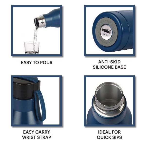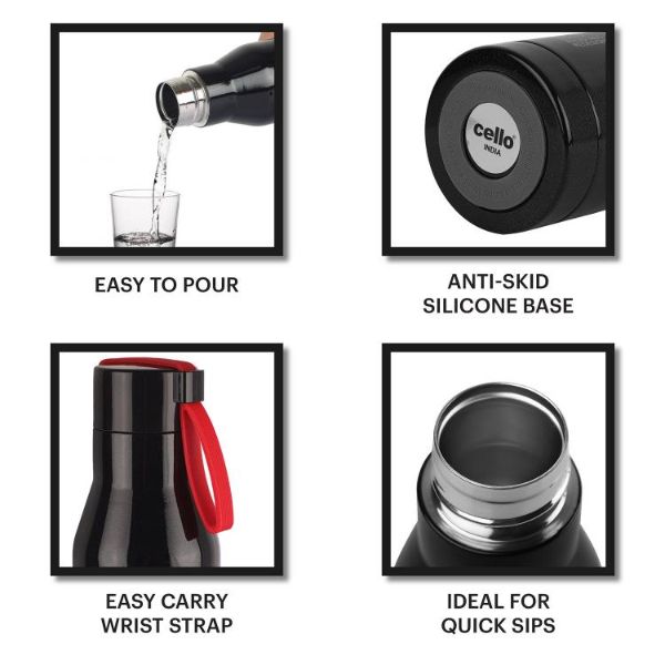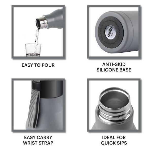 Introducing the Maestro Flask by Cello, a cutting-edge stainless steel water bottle that elevates your hydration experience. Engineered with patented vacuum technology, this Vacusteel flask ensures your beverages stay refreshingly cold or piping hot for hours on end. Its double-walled insulation, coupled with an inner copper coating and thermoseal technology, guarantees superior temperature retention. With a spill-free flip top lid and a stylish design, it's perfect for your on-the-go lifestyle, whether you're at the office, home, picnicking, or camping. Crafted from high-grade stainless steel, this reusable bottle is leak-proof, durable, and rust-proof, making it a must-have for both self-use and gifting.