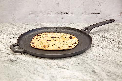 Meyer Pre-Seasoned Cast Iron Flat Dosa, Roti, Chapati Tawa Pan with Stick Handle, Dosa Kallu, Iron Tawa Big Size | Pre-Seasoned Iron Cookware | Gas and Induction Compatible | 28cm, Black