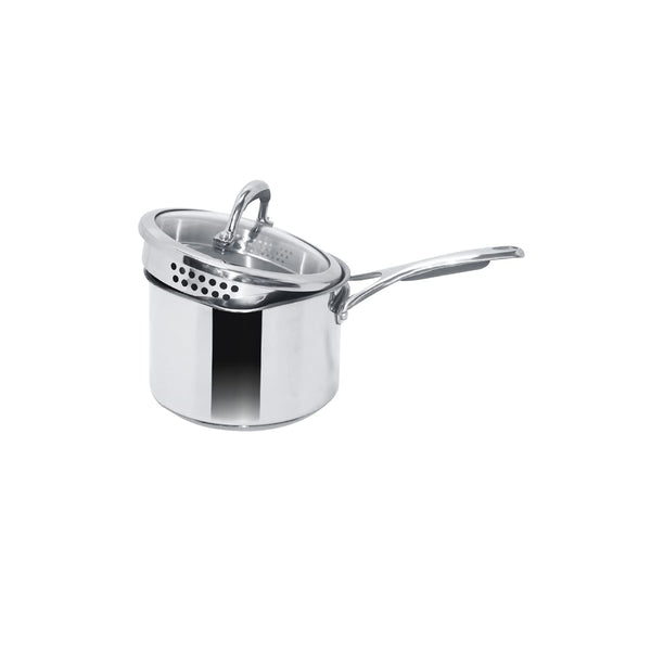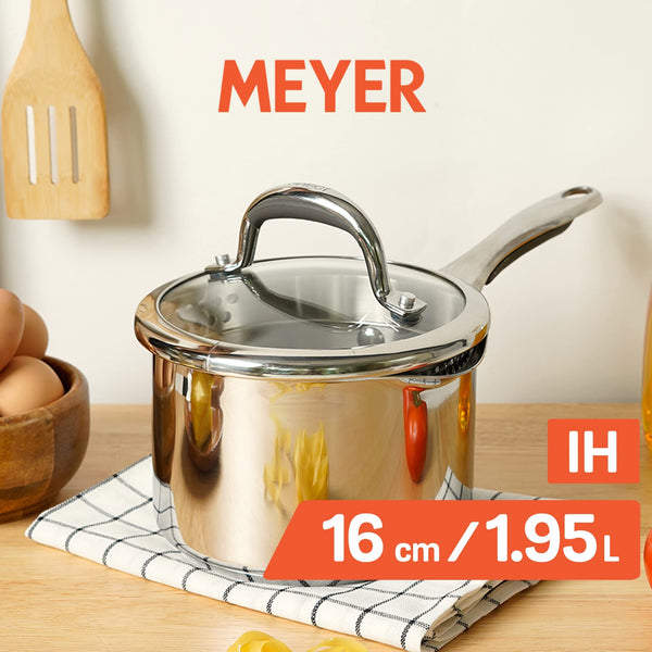 Details: High grade FW2 stainless steel from Nippon Corp. Japan that will last you with ultimate strength and durability as it has superior pitting resistance than any other ordinary stainless steel cookware. Impact bonded base for even heat distribution. Ingenious colander lid for ease of straining from the vessel. Measuring scale etched on the side wall for accuracy and convenience. Suitable for all cooktops including induction. Shatter resistant Colander glass lid. Cast stainless steel riveted handle with silicone grip, for easy and comfortable grasp. Our manufacturing spread across the globe creates over 300 cookware lines that are distributed in over 60 countries. Meyer provides a warranty of 10 years on its Select range.