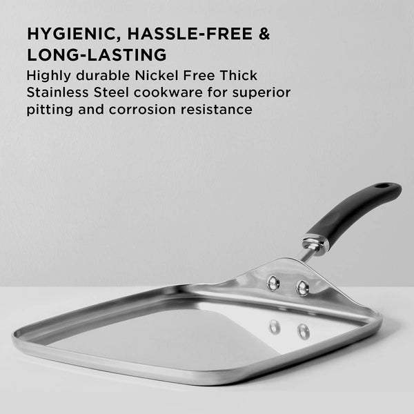Details: Meyer Non-Stick Cookware Set: Elevate Your Culinary Journey Discover the art of effortless cooking with the Meyer Non-Stick Cookware Set. This versatile collection includes a non-stick pan, kadai, grill pan, tawa, and a nonstick tava - all designed to redefine your cooking experience.Experience cooking mastery with Meyer's advanced non-stick coating. Say goodbye to sticking and scraping; your creations will slide effortlessly onto the plate.Designed with user comfort in mind, each piece features ergonomically designed handles for a secure grip, allowing you to cook with confidence. Cleaning up is a breeze. The non-stick surface requires minimal effort to wipe clean, ensuring your cookware looks as good as new after every use.Variety of Cookware Included Non-Stick Pan, Kadai,Grill Pan,Tawa,Nonstick Tava.Revolutionize Your Cooking Today with Meyer's Finest Cookware.
