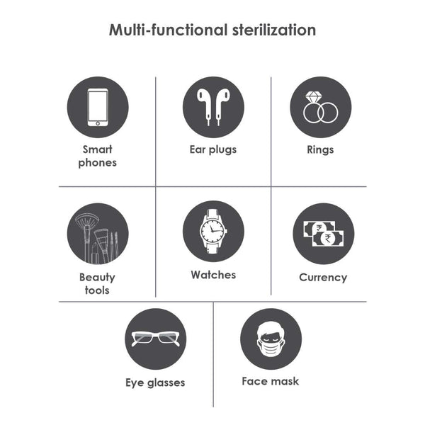 Ultra-violet sterilization technology is used to kill bacteria and virus present on various products. As per lab tests, 10 minutes of radiation can effectively kill E. coli, Candida albicans, Staphylococcus aureus and other common bacteria and virus, with a sterilization efficiency of up to 99.5%.