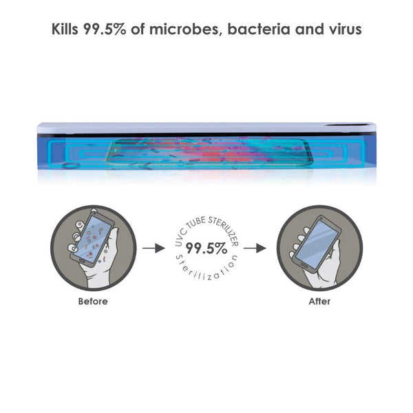 The high-efficiency UV Sterilizer kills 99.5% of germs that live on the surface of your phone in 10 minutes! Auto-shut off after 10 minutes