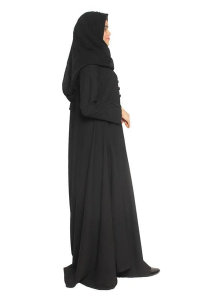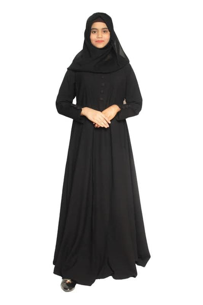 MODEST CITY Self Design Plain Black Front 4 Button Abaya or Burqa With Hijab for Women &Girls-(FREE)