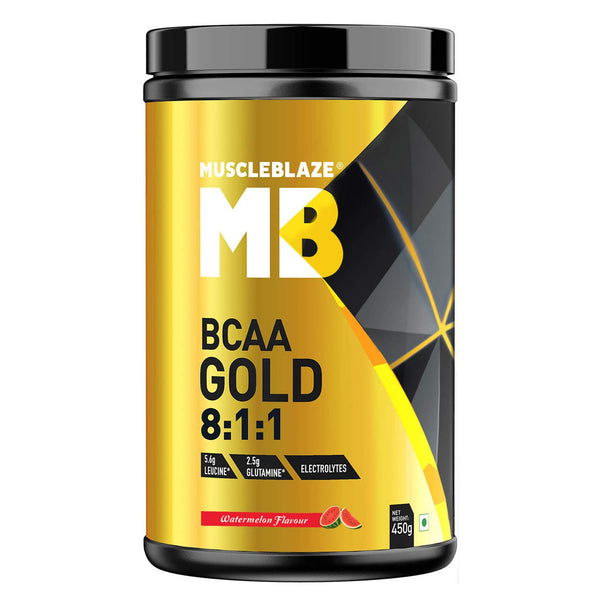 MuscleBlaze BCAA Gold 8:1:1 with Higher Leucine, Electrolytes, Glutamine (Watermelon, 450 g / 0.99 lb, 30 Servings)