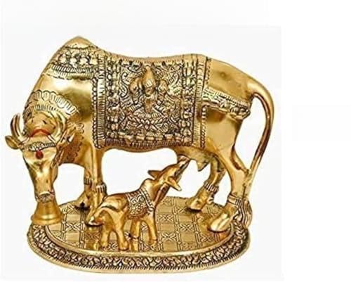 ND Fashion Brass Golden Kamdhenu Cow with Calf | | Vastu Gau MATA Idol | | Spiritual Vastu Nandi Pooja Figurine Sculpture | Kamdhenu Cow & Calf Idol for Home and Office (Cow with Calf)