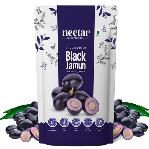 Nectar Superfoods Freeze Dried Black Jamun | No Preservatives, No Added Sugar, Healthy Dried Fruit | 100% Natural, Vegan, Gluten Free Snack for Kids and Adults | 20 gram Pouch (PACK OF 1)