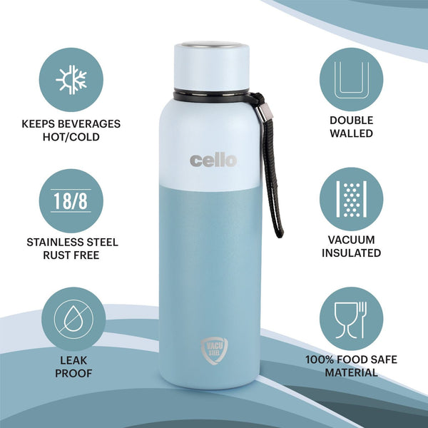 Neo Kent Flask, Vacusteel Water Bottle 750 ml dual tones collection is the epitome of style and functionality. Stay hydrated in vibrant colors, from the soothing Blue to the nature-inspired Green and the elegant Peach. With a sleek Black option, timeless Grey, and a touch of royalty in Purple, there's a shade for every taste. Crafted with precision using Vacusteel technology, this 750 ml water bottle ensures your beverages stay at the perfect temperature for longer. Elevate your hydration experience with Neo Kent, where design meets performance.