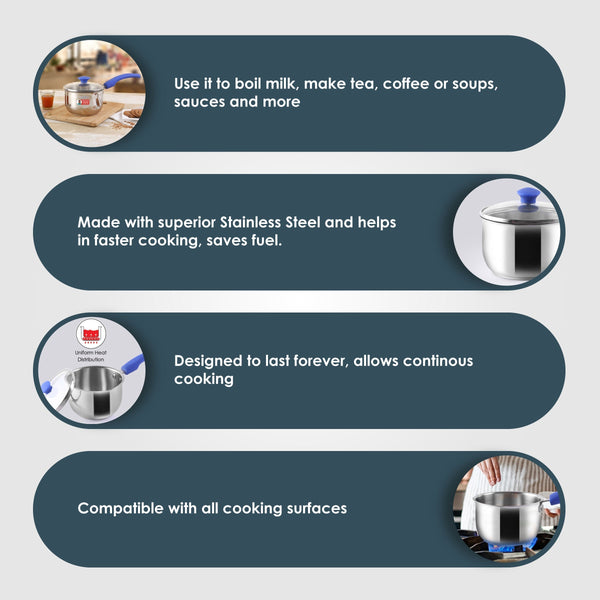 Nigella Tea Pot from Wonderchef is most suited for quickly boiling water, making tea, coffee or hot chocolate or even soups! Superior stainless steel quality, sturdy handles makes it convenient for daily use in professional and home kitchens. Nigella Range is adored by everyone because they last for years!