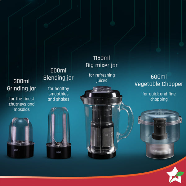 Nutri Blend Smart CKM Automatic Mixer Grinder with Dual Pulse Function|22000 RPM|100% Full Copper Motor|2 Unbreakable Jars|500 W|2 Years Warranty|Recipe book by Chef Sanjeev Kapoor| Black
