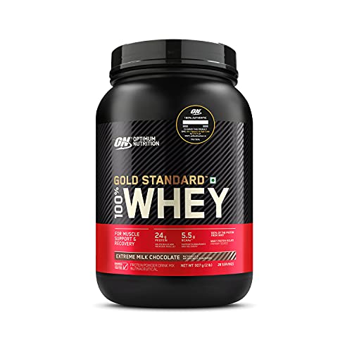 Optimum Nutrition (ON) Gold Standard 100% Whey Protein Powder - 2 lbs, 907 g (Extreme Milk Chocolate), Primary Source Isolate