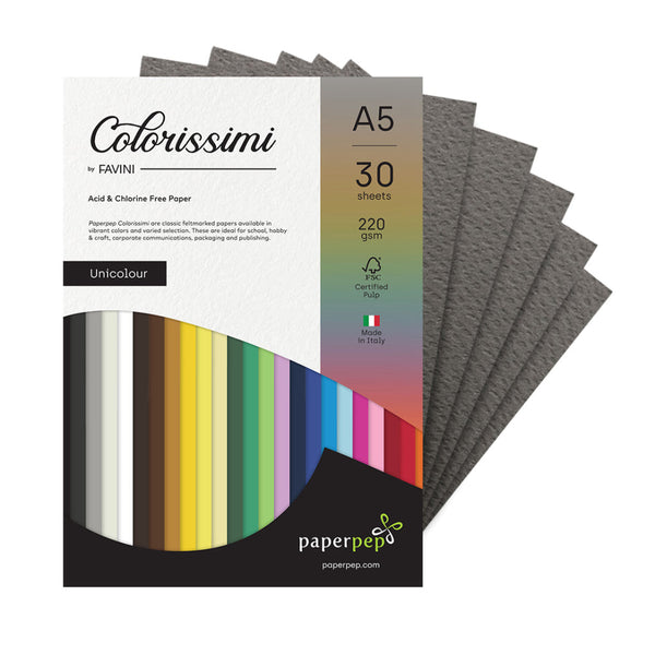 Paper Pep Colorissimi Card Stock 220Gsm A5 Piombo (Dark Grey) Unicolor Of 30 Sheets
