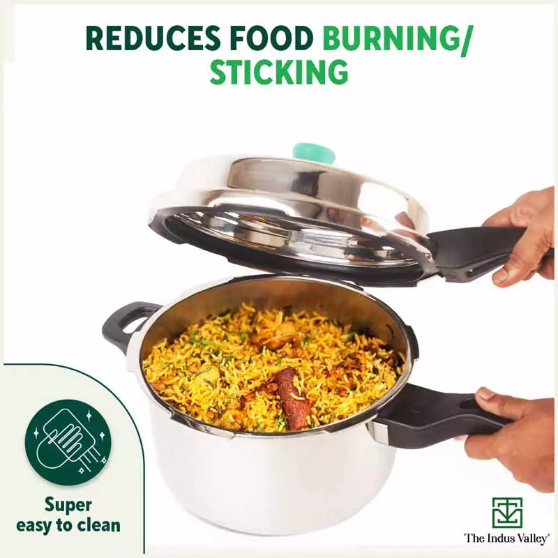 Make this triply stainless steel pressure cooker your lifelong cooking partner. Buy pressure cooker online from The Indus Valley and make your cooking really effortless.