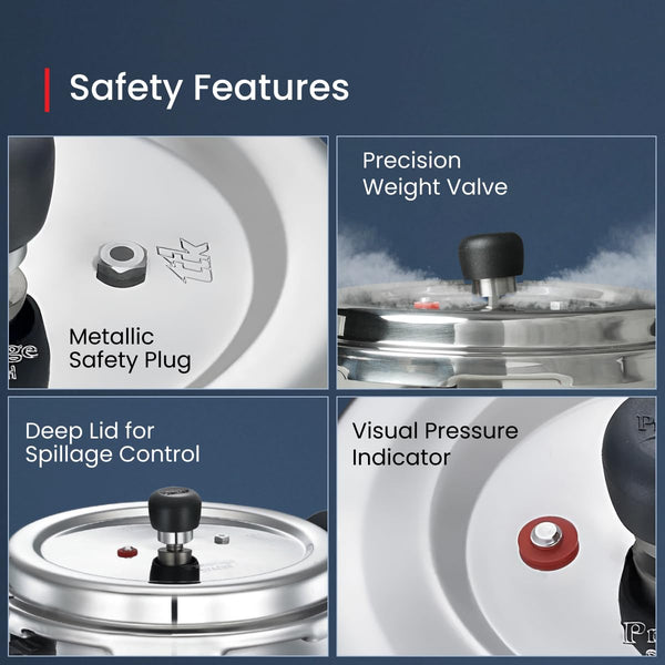Prestige 5L Deluxe Alpha Svachh stainless steel Pressure Cooker|Outer lid|Ideal for 5-7 persons|Deep lid for spillage control|Gas & induction compatible|Silver