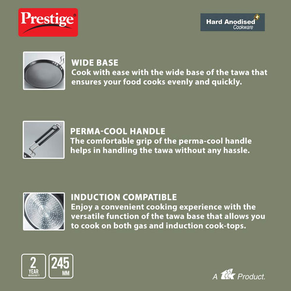 Details: Experience new-age cooking with this Chapati Tawa. India's first Hard Anodised cookware that works both on gas stove and induction cook top