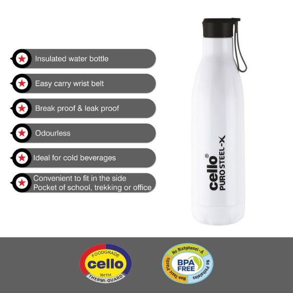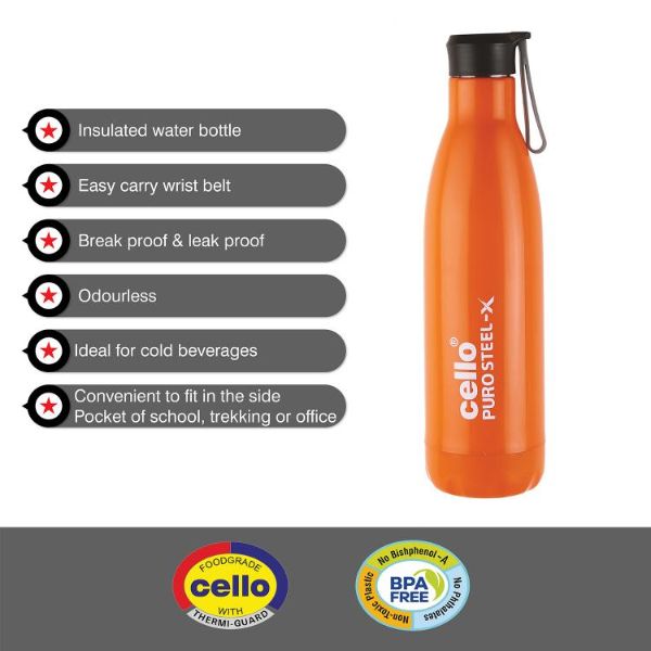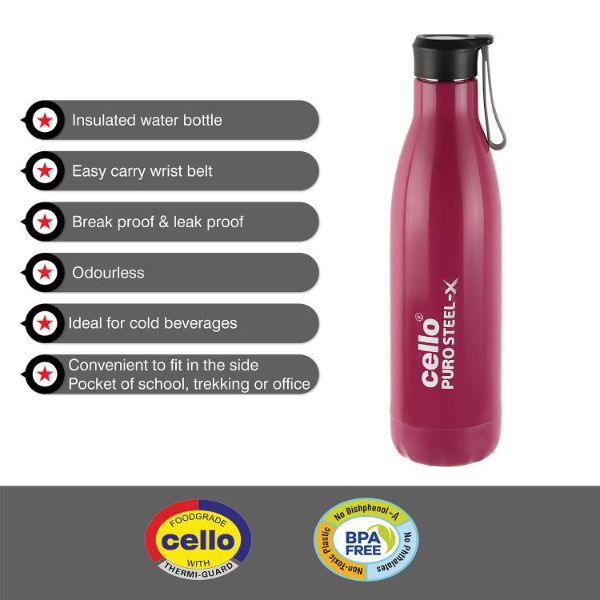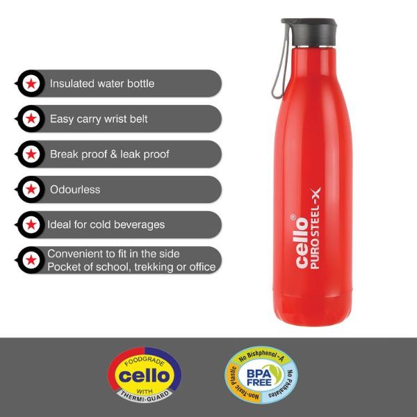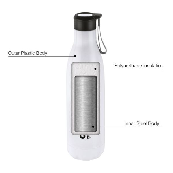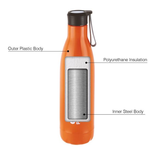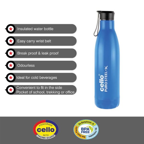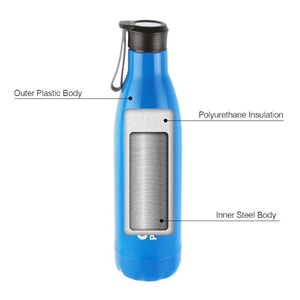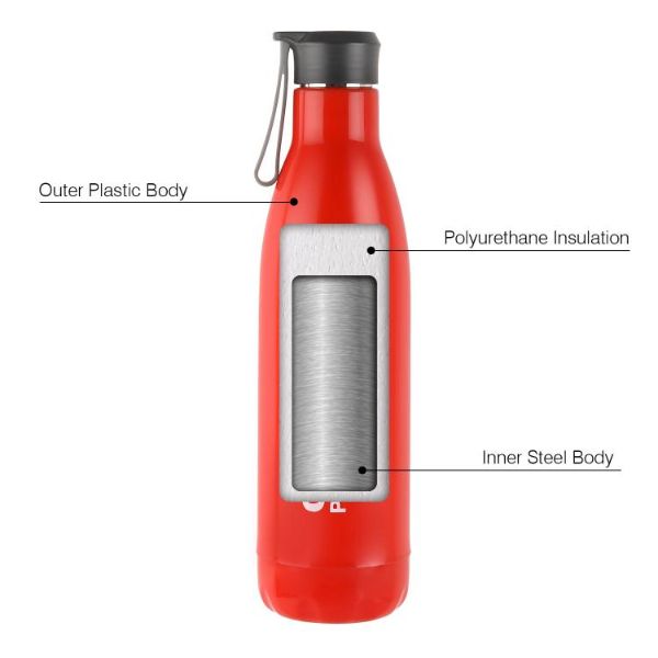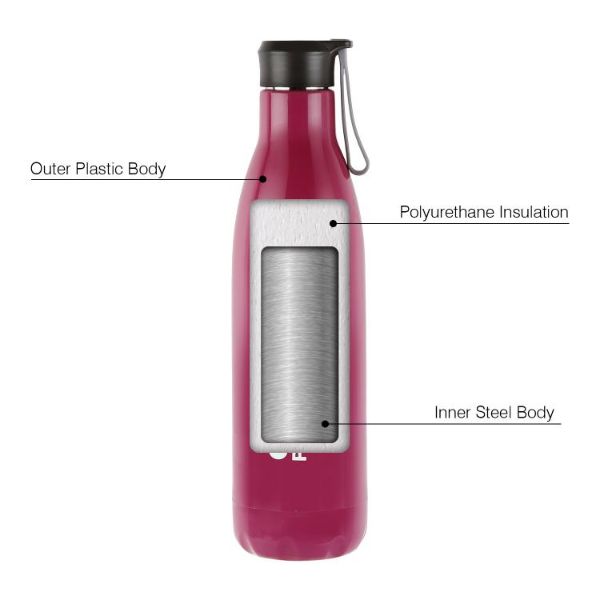 Introducing the Puro Wave 900 Water Bottle, a 720ml marvel in the world of beverage containers. With its unique dual-layer construction, this bottle is your go-to choice for maintaining the ideal temperature of your drinks on the go. Its stylish wavy pattern adds a touch of elegance, while the vibrant color options, including Blue, Navy Blue, Pink, Red, and Yellow, cater to a wide range of preferences. The 720ml capacity makes it perfect for quenching your thirst throughout the day, whether you're at home, the office, school, or traveling. Its plastic outer and steel inner construction ensures excellent insulation, keeping your beverages hot or cold for extended hours.